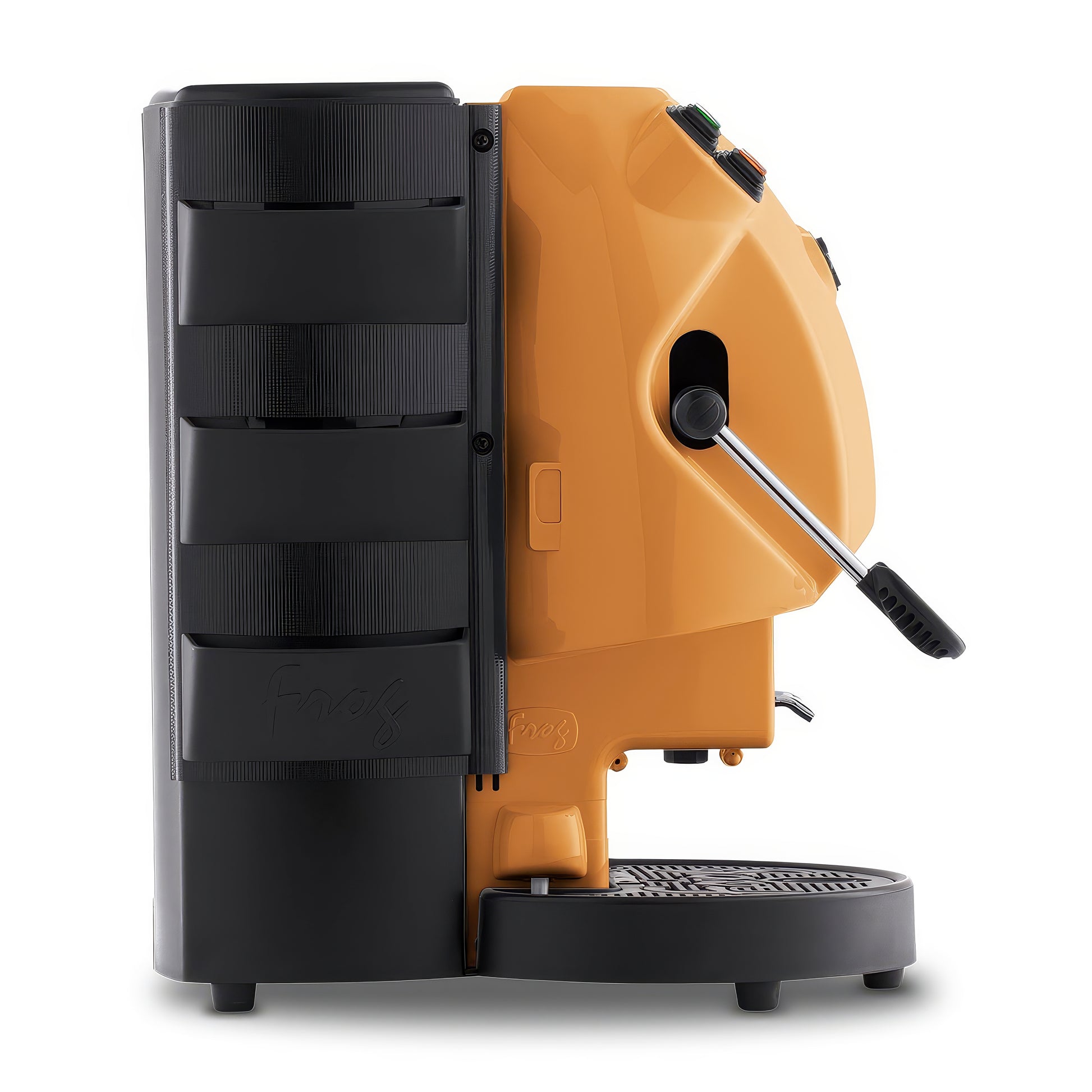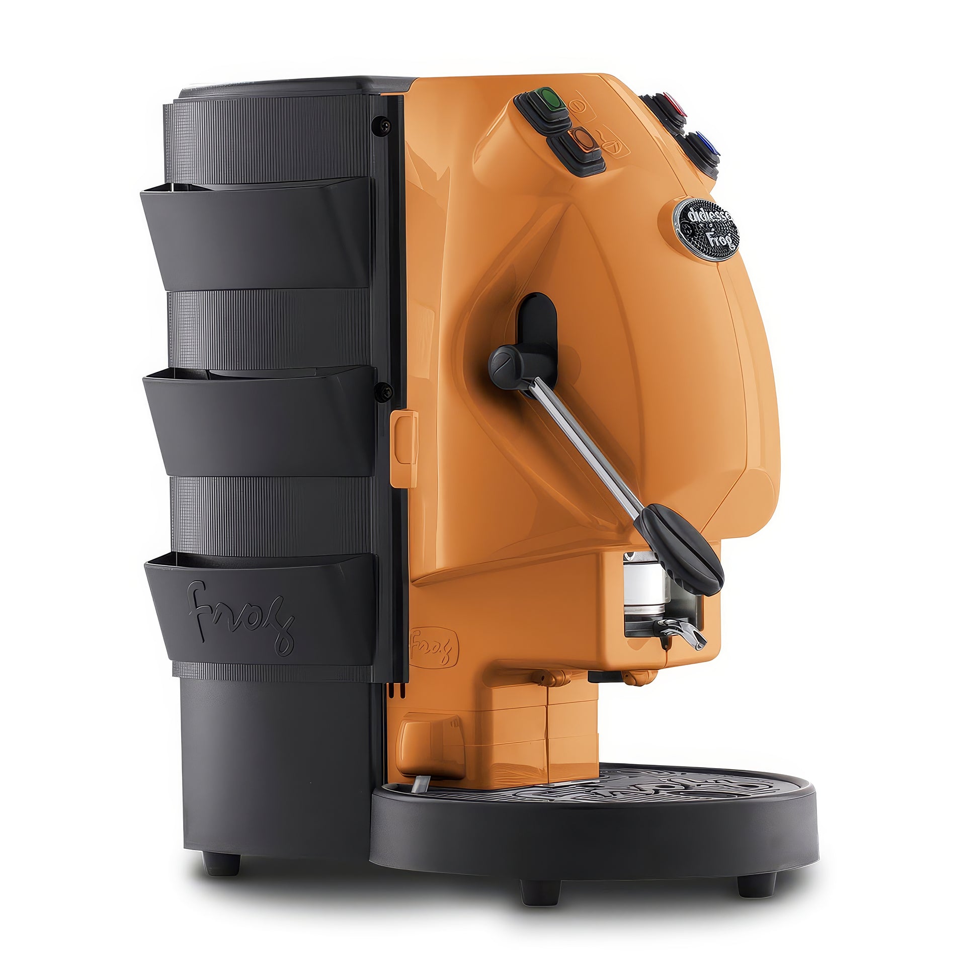 La macchina per caffè espresso Frog, dal design divertente e colorato, si adatta a tutti gli ambienti sia dal punto di vista estetico che funzionale.
